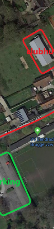 Het clubhuis is op het einde van het paadje aan de parking van de Watertoren.
